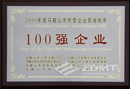 中德機(jī)床榮獲“2009年度馬鞍山民營企業(yè)雙百強(qiáng)”稱號(hào)