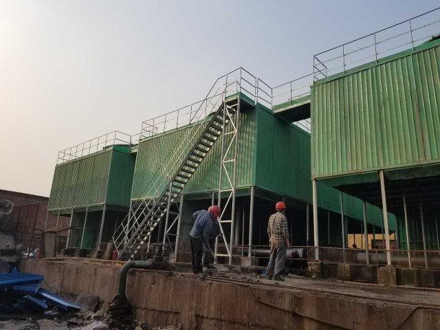 逆流式冷卻塔:是指冷卻熱水從上向下穿過填料,而空氣從下向上流動穿過填料,熱水和空氣的流動方向呈近乎1800的一種冷卻塔(有些廠家稱為對流式冷卻塔)。